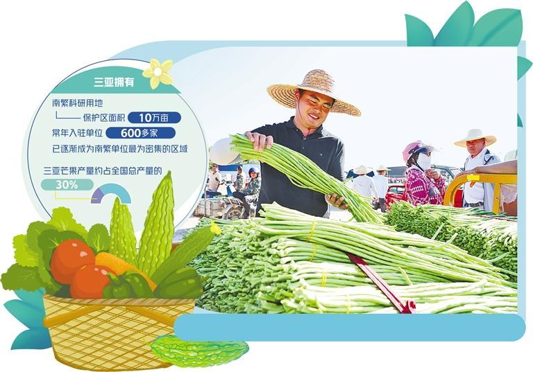 三亞蔬果業(yè)繁榮有賴(lài)于南繁種業(yè)基地的賦能。三亞擁有南繁科研用地保護(hù)區(qū)面積10萬(wàn)畝,常年入駐單位達(dá)600多家,已逐漸成為南繁單位最為密集的區(qū)域。每年冬春,來(lái)自全國(guó)各大農(nóng)業(yè)科研機(jī)構(gòu)的6000名專(zhuān)家人才匯聚于此,田地間、實(shí)驗(yàn)室、人才小院處處可見(jiàn)他們的身影,培育出最適合生長(zhǎng)在三亞市崖州區(qū)這片土地上的“致富苗”。