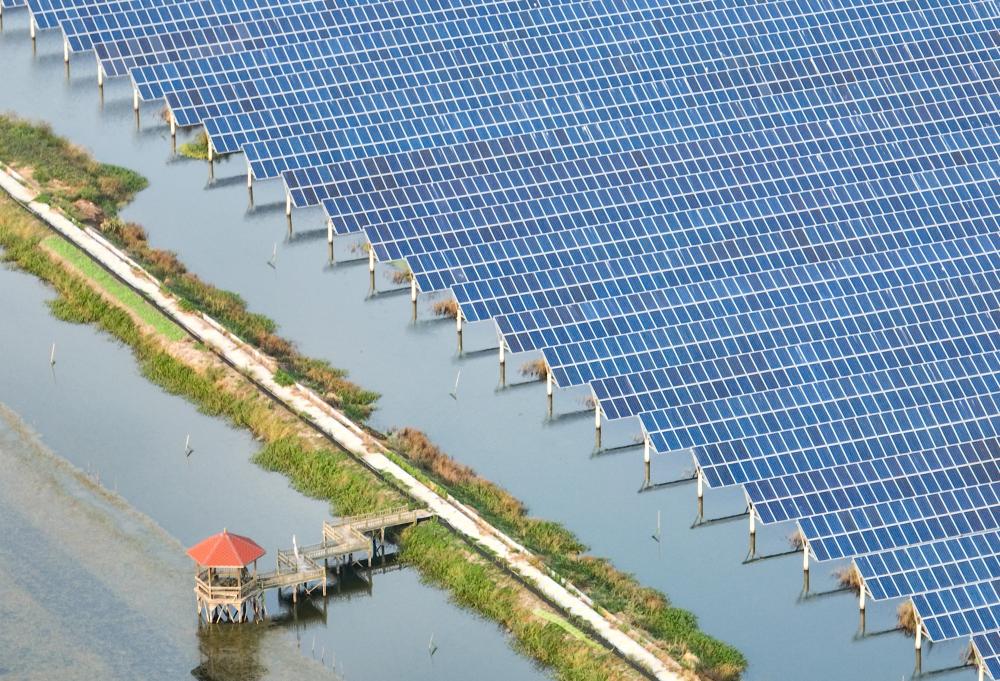2023年10月11日拍攝的江蘇省興化市千垛鎮(zhèn)連片的光伏發(fā)電板(無(wú)人機(jī)照片)。新華社發(fā)(周社根 攝)